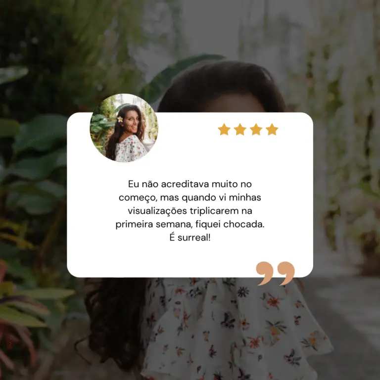 Eu sei exatamente como é se sentir invisível nas Redes Sociais. Durante muito tempo, eu postava sem parar e nada acontecia. Até que, depois de muitos testes e erros, desenvolvi um método simples que me fez ganhar mais de 10 mil seguidores em apenas 30 dias. Agora ensino passo a passo para você ter o mesmo resultado.